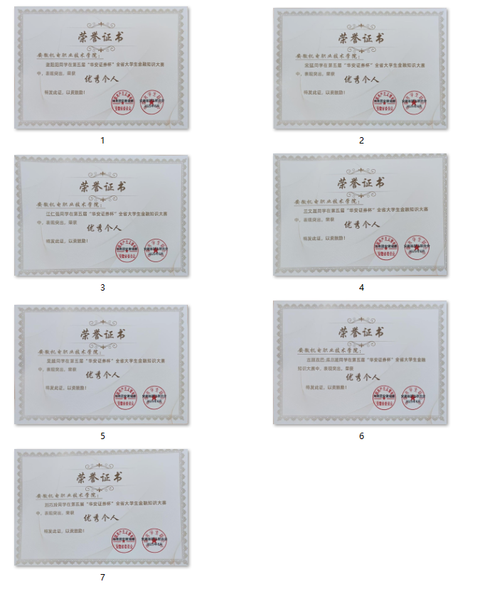 近日,团省委、省学联联合华安证券股份有限公司开展的第五届“华安证券杯”安徽省大学生金融知识大赛圆满落幕。经过激烈角逐,学校谢阳阳、宋猛、刘巧玲、吴嫣、兰文磊、古丽孜巴·库尔班、江仁强7名学生荣获“优秀个人”(全省150名)。