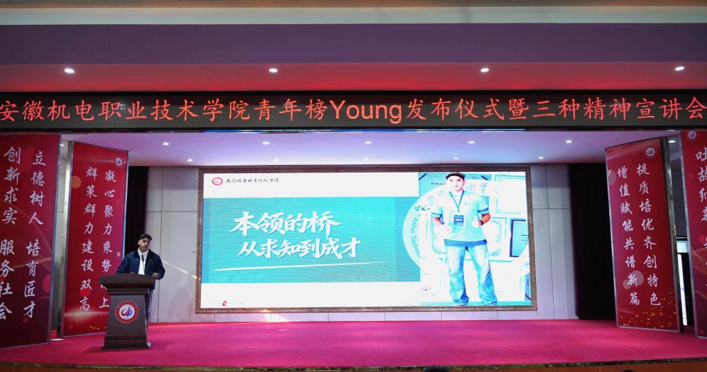 3月12日下午,学校青年榜“Young”发布仪式暨“三种精神”宣讲活动在明德楼报告厅举行。校团委负责人徐亚伟主持活动,2025年度“中国大学生自强之星”拜色尔·阿布力克木同学作为主讲人分享了他的成长故事。