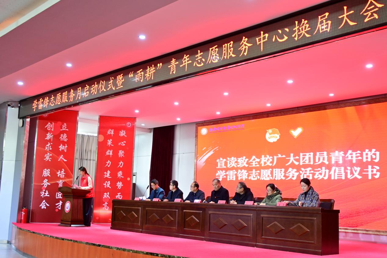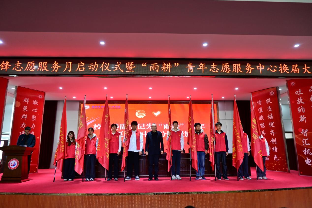 人勤春来早,奋进正当时。3月5日中午,学校2026年学雷锋志愿服务月活动启动仪式暨“雨耕”青年志愿服务中心换届大会在明德楼报告厅举行。校党委副书记姜绳出席大会并讲话,宣传(统战)部、学工部、校团委负责人,各二级学院团委书记,校团委全体人员及志愿者代表参加活动。大会由校团委负责人徐亚伟主持。